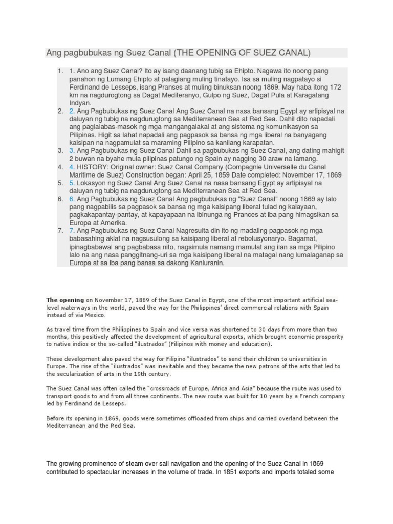Pagbubukas ng suez canal anong taon. Araling Panlipunan 28102019 1629 jemuelpogi.